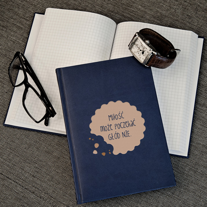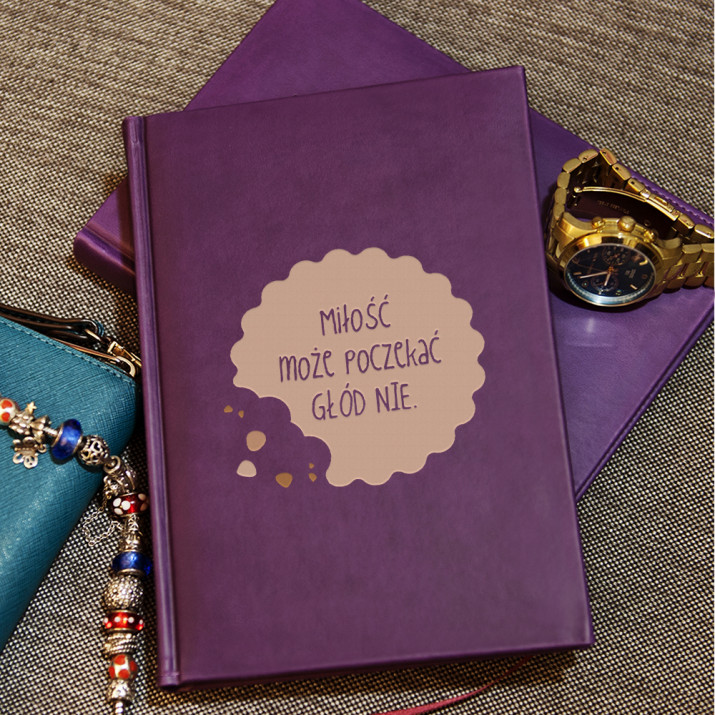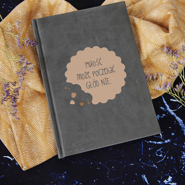 Notatnik w sam raz dla kogoś, kto ma słabość do „czegoś słodkiego”... czyli dla każdego z nas! Wesołe, wygrawerowane na nim hasło, może nie brzmi zbyt romantycznie, ale jest prawdziwe!Wykonanie