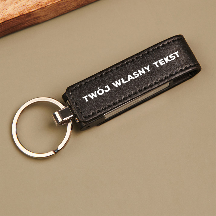 Wysokiej jakości, przenośna pamięć USB o pojemności 32 GB. Produkt wykonany jest z metalu i oprawiony w zapinkę z ekoskóry w dwóch kolorach: czarnym lub białym. Jest to uniwersalny i praktyczny gadżet, który można podarować na każdą okazję! Dodatkowo pendrive wyposażony jest w praktyczny brelok, dzięki czemu można przypiąć go np. do kluczy. Na powierzchni produktu umieszczamy wyjątkowy, personalizowany nadruk.Szczegółowe informacje: