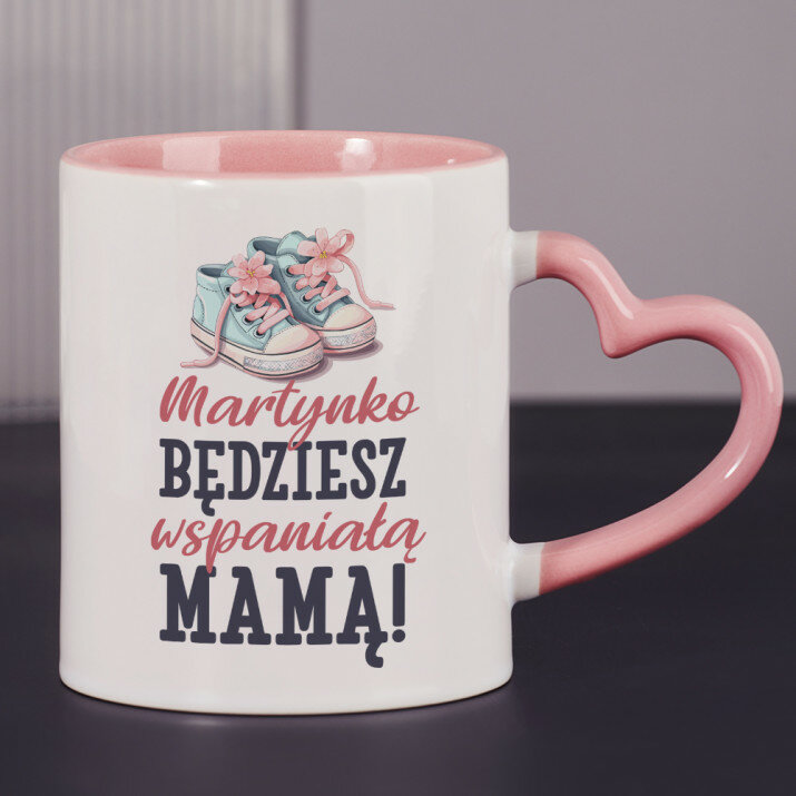 Dostępne są również kubki z uszkiem w kształcie serca i różowym środkiem, o pojemności 330 ml