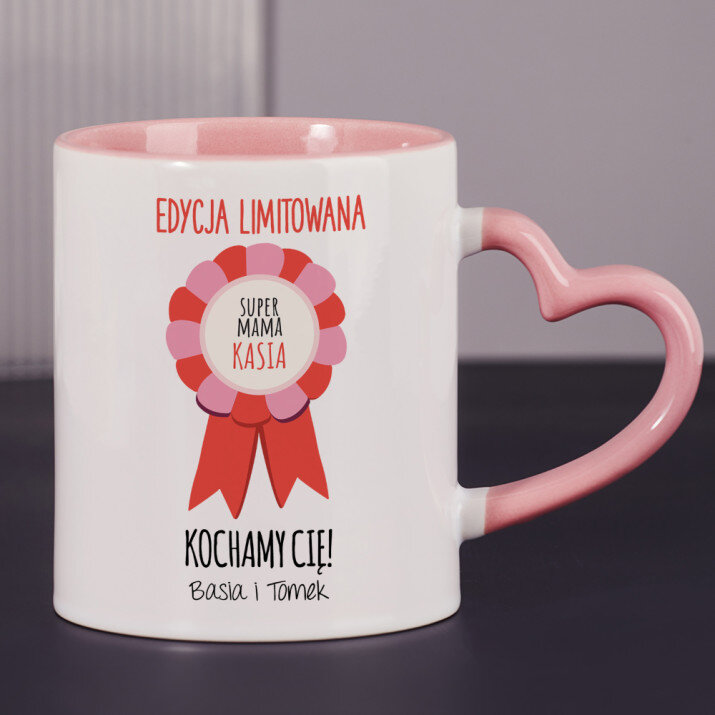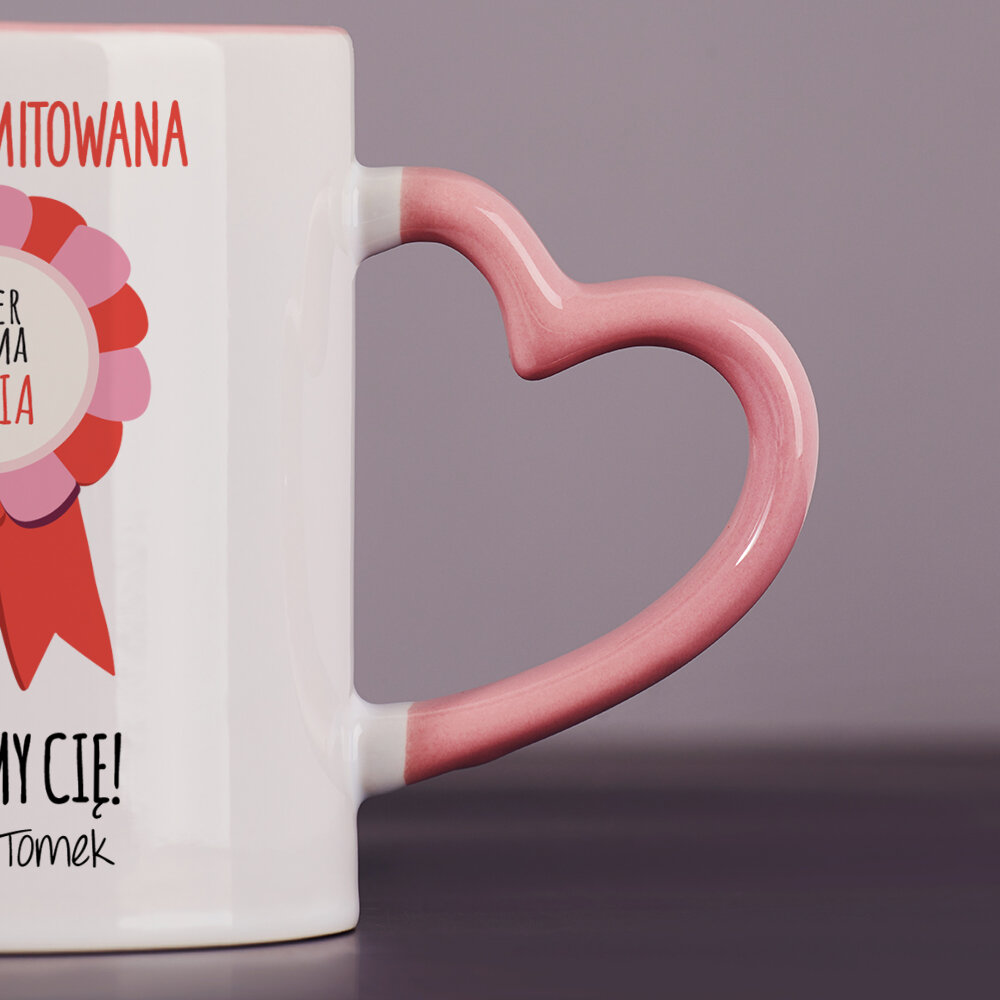 Dostępne są również kubki z uszkiem w kształcie serca i różowym środkiem, o pojemności 330 ml