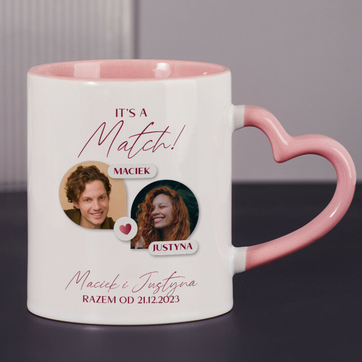 Dostępne są również kubki z uszkiem w kształcie serca i różowym środkiem, o pojemności 330 ml