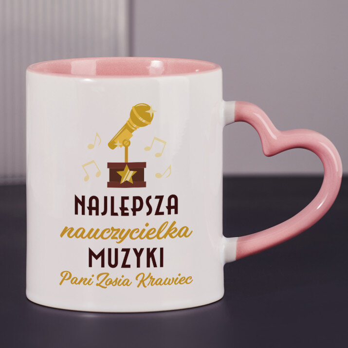 Dostępne są również kubki z uszkiem w kształcie serca i różowym środkiem, o pojemności 330 ml