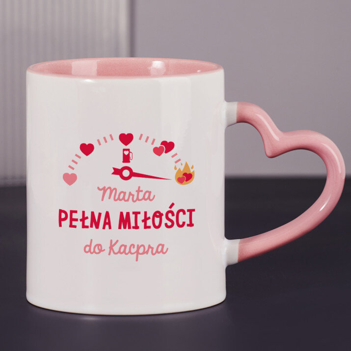 Dostępne są również kubki z uszkiem w kształcie serca i różowym środkiem, o pojemności 330 ml