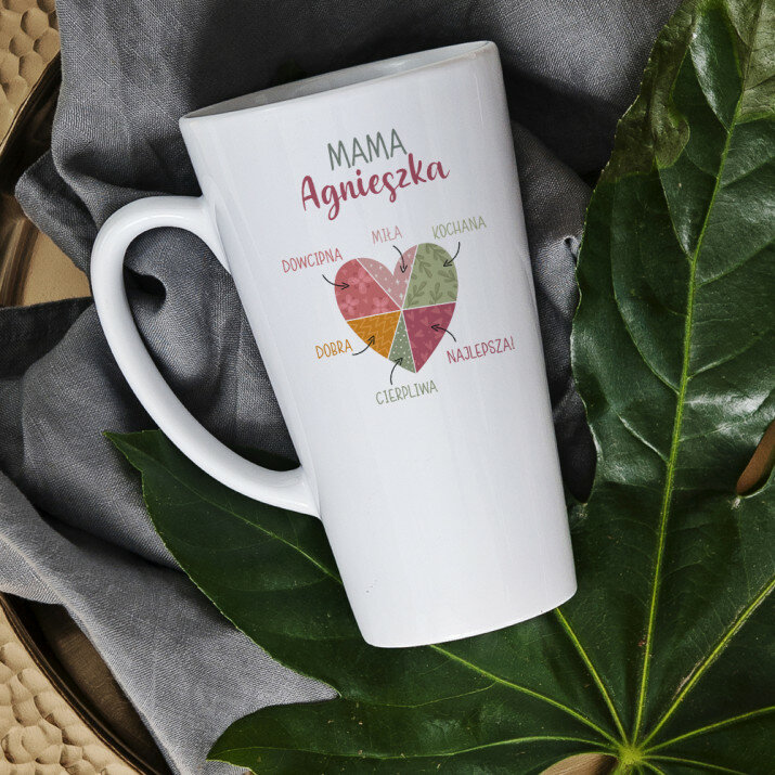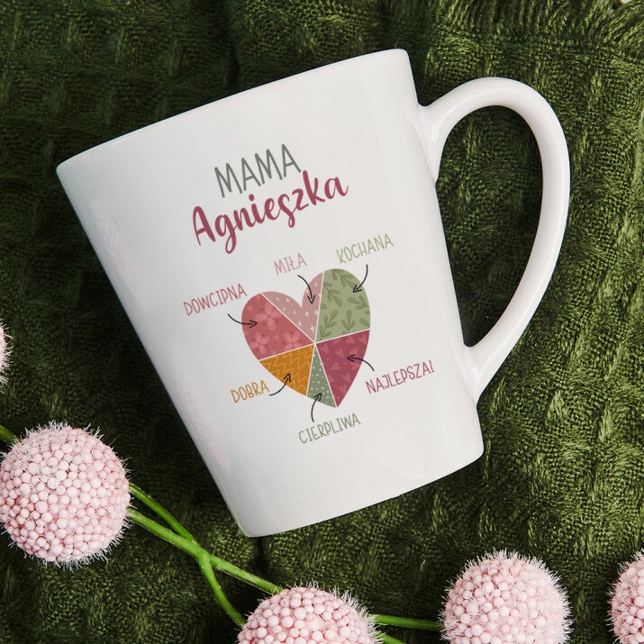 Dostępne są również kubki z uszkiem w kształcie serca i różowym środkiem, o pojemności 330 ml