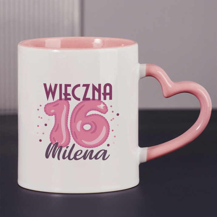 Dostępne są również kubki z uszkiem w kształcie serca i różowym środkiem, o pojemności 330 ml