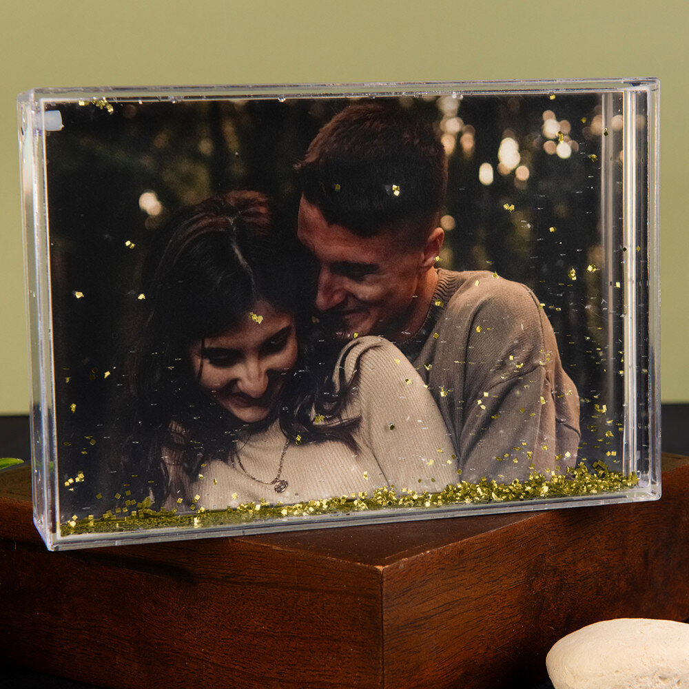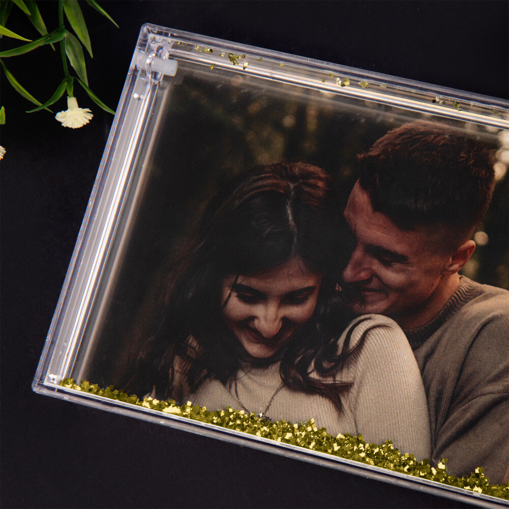 Wyjątkowa ramka wodna została wykonana z wysokiej jakości plastiku, który jest niezwykle trwały, a jej wnętrze zdobią pływające srebrne drobinki. Ramka wodna ma wymiary 10 x 15 cm, co czyni ją idealnym elementem dekoracyjnym, który można umieścić w dowolnym miejscu. Jej oryginalny design zachwyca, dzięki czemu jest idealnym upominkiem dla każdego. W środku umieścimy wybrane przez Ciebie zdjęcie w formie nadruku w technologii UV.