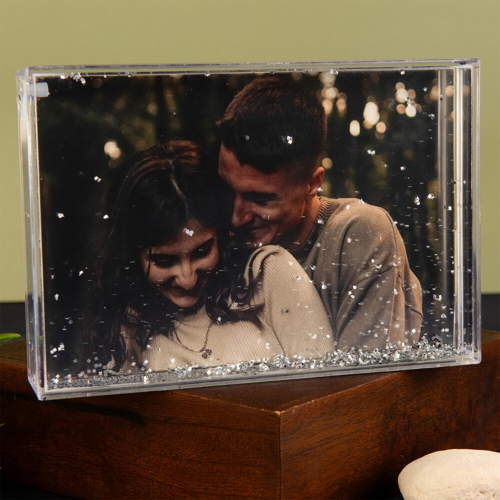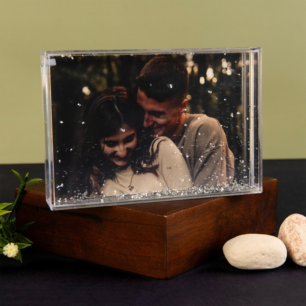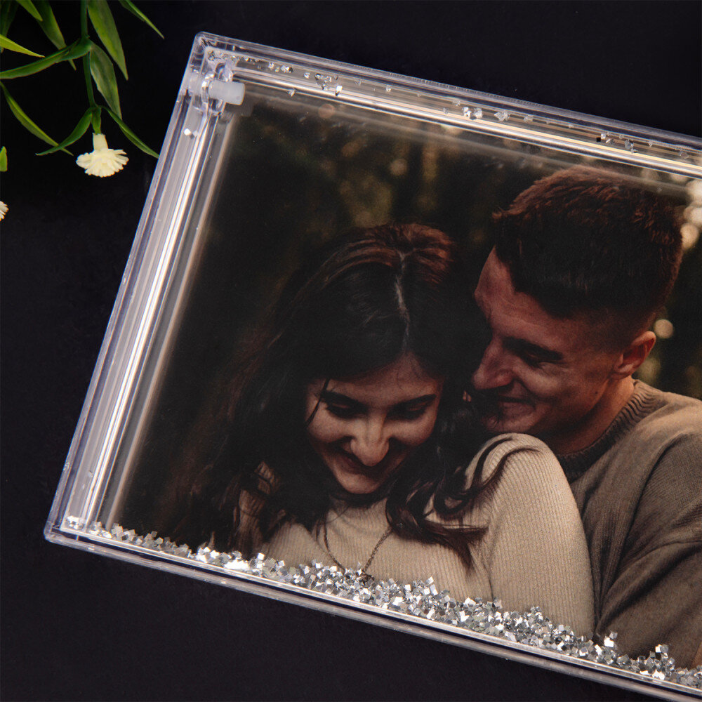 Wyjątkowa ramka wodna została wykonana z wysokiej jakości plastiku, który jest niezwykle trwały, a jej wnętrze zdobią pływające konfetti w kształcie płatków śniegu. Ramka wodna ma wymiary 10 x 15 cm, co czyni ją idealnym elementem dekoracyjnym, który można umieścić w dowolnym miejscu. Jej oryginalny design zachwyca, dzięki czemu jest idealnym upominkiem dla każdego. W środku umieścimy wybrane przez Ciebie zdjęcie w formie nadruku w technologii UV.