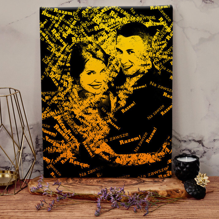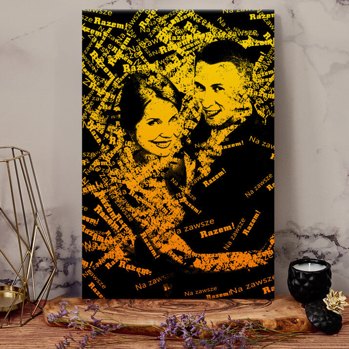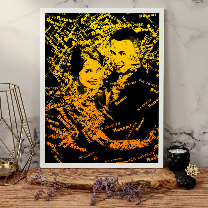 Obraz ze zdjęcia, które jest stworzone z przesłanych przez Ciebie słów. Przekaż wiadomość łącząc zdjęcie ze słowami w mocnych czarno-żółtych kolorach, które rzucają się w oczy!STYLOWY PORTRET