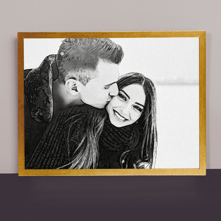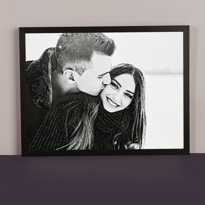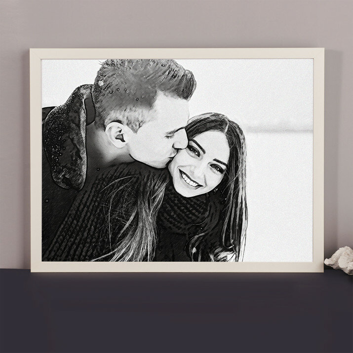 Obraz w stylu Sketch to Twoje zdjęcie w efektownych odcieniach szarości ze wzmocnionym kontrastem i pogłębioną czernią. Wydruk stworzony z wysoką dbałością o szczegóły zaskoczy Twoich bliskich!STYLOWY PORTRET
