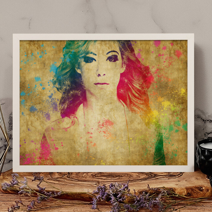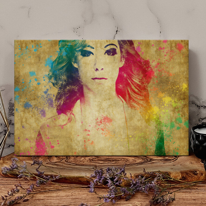 Styl Watercolor charakteryzuje się mocnymi kolorami i intensywnymi plamami farby jak w obrazach malowanych akwarelami. Taki obraz na ścianie przykuje uwagę każdego!STYLOWY PORTRET