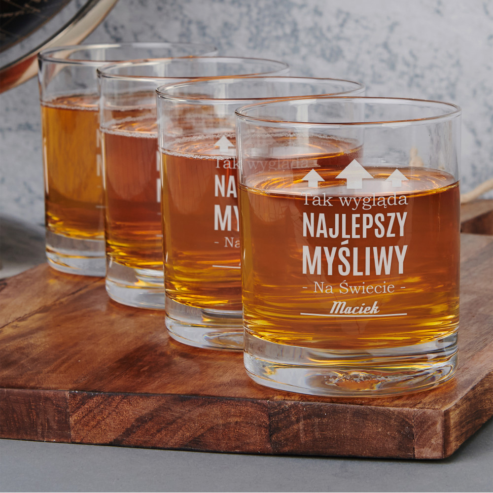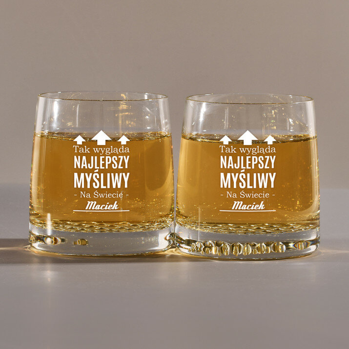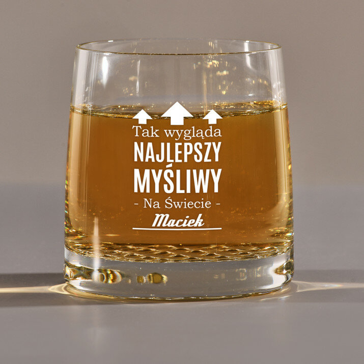Prezent dla Najlepszego Myśliwego. Żeby wszyscy wiedzieli, że ten, kto pije dobre whisky to właśnie On. Z pewnością będzie zachwycony taką spersonalizowaną szklanką.