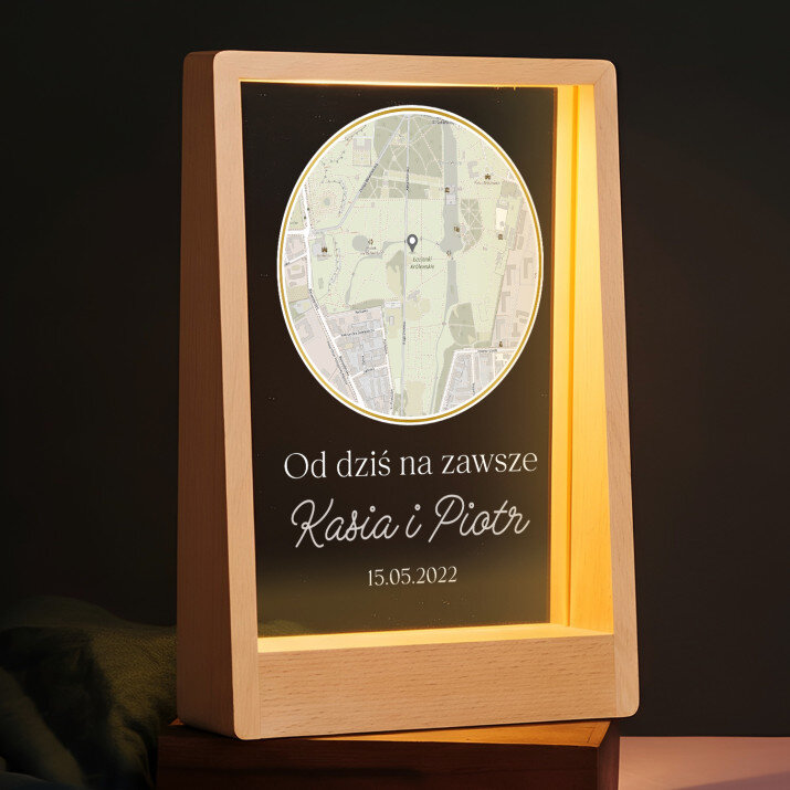 Od dziś na zawsze - Twoja lokalizacja - Wydruk na szkle akrylowym z podstawką to doskonały sposób na uwiecznienie momentu, który na zawsze pozostanie w naszej pamięci.