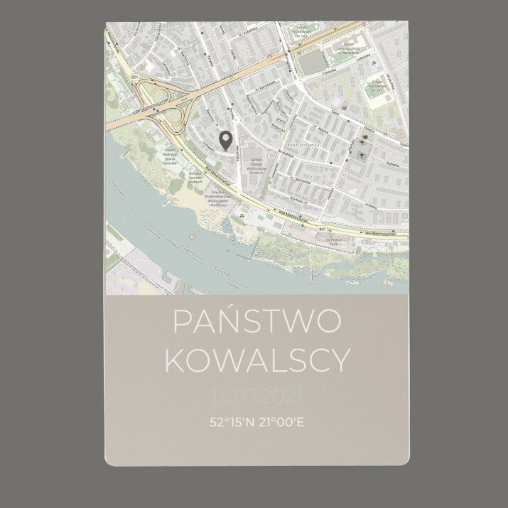Czasami wystarczy zamknąć oczy, żeby przenieść się do miejsc, które wiele dla nas znaczą. Zazwyczaj dzielimy je z ukochaną osobą, rodziną albo przyjaciółmi. Kojarzą nam się z wyjątkowymi i najważniejszymi chwilami. Te wspólne wspomnienia można symbolicznie przenieść na niezwykły upominek, który zachwyci bliską osobę.Dzięki podanej przez Ciebie lokalizacji prezent będzie idealny na ślub, rocznicę albo walentynki. Doskonale sprawdzi się także jako pamiątka dla przyjaciół. Wybrana przez Ciebie lokalizacja (jedna lub więcej - w zależności od wybranego wzoru), uzupełniona personalizowanymi elementami, wygląda niezwykle elegancko. Taki upominek jest jedyny w swoim rodzaju!