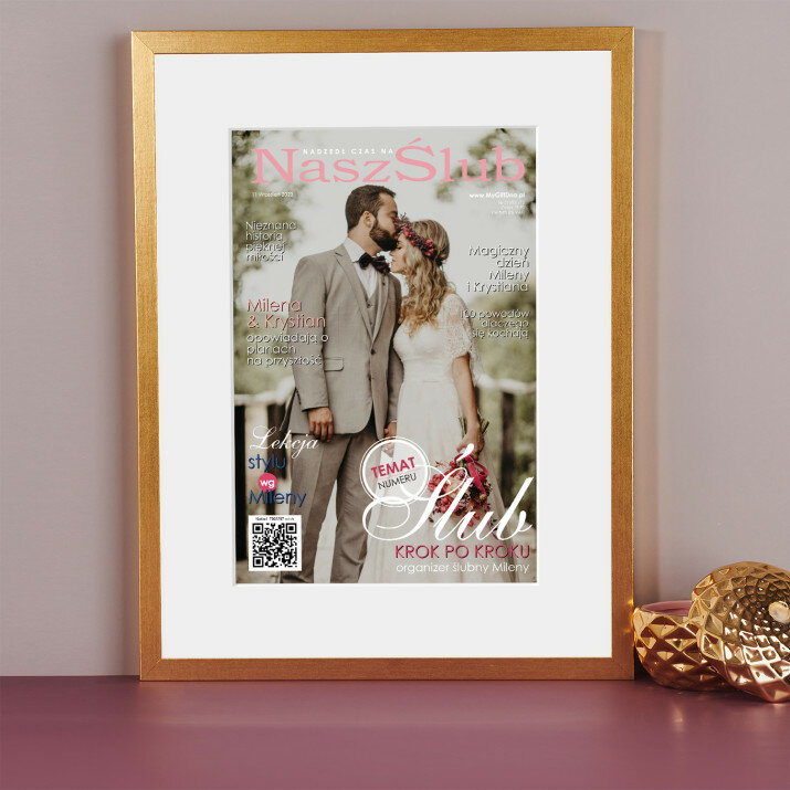 Okładka wydrukowana jest na papierze foto w formacie 30 x 40 cm i oprawiona w drewnianą ramkę.