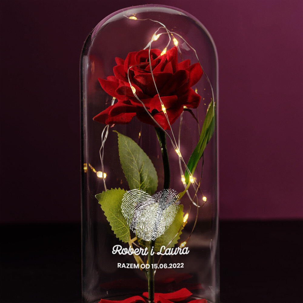Ta wieczna róża w szkle to prawdziwie romantyczny prezent. Delikatne odciski palców nadają jej osobisty charakter.