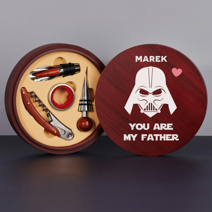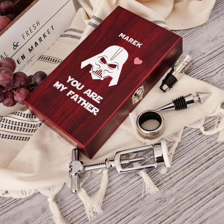 Jeśli twój tata lubi Gwiezdne Wojny lub po prostu: ma poczucie humoru – na pewno spodoba mu się taki prezent! Zestaw do wina z wizerunkiem Dartha Vadera i słynnym filmowym cytatem ma w sobie moc!
