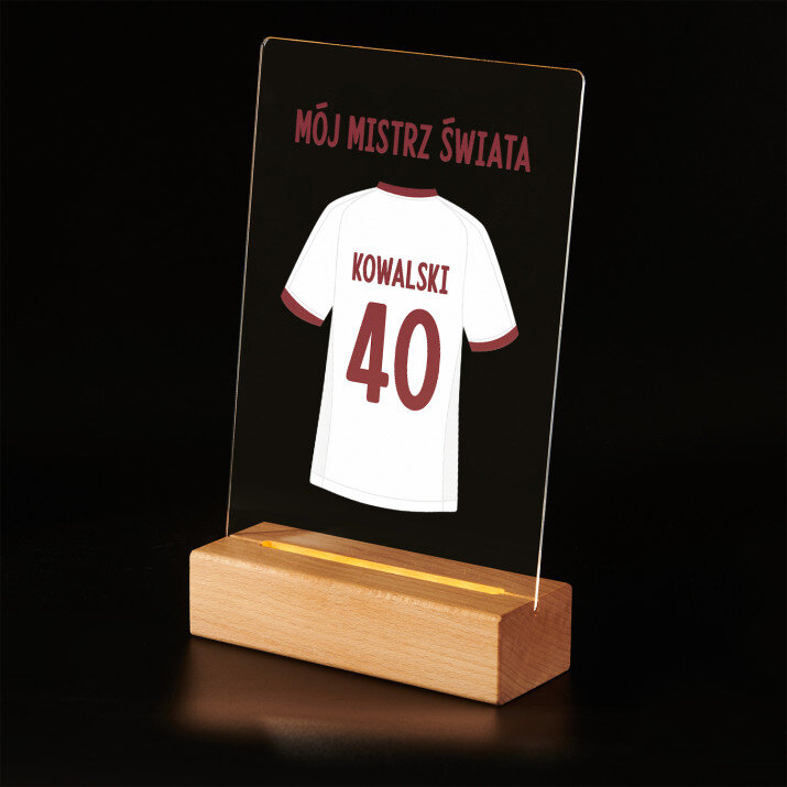 Wydruk na szkle akrylowym z podstawką drewnianą LED.