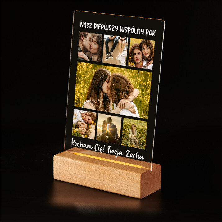 Wydruk na szkle akrylowym z podstawką drewnianą LED.