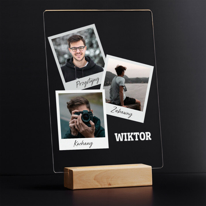 Wyjątkowa pamiątka, która zachwyci obdarowaną osobę! Wydruk na bezbarwnym szkle akrylowym (pleksiglas) o grubości 2 mm to upominek na lata. Materiał wyróżnia się doskonałą jakością powierzchni i sztywnością, jest odporny na uszkodzenia oraz warunki atmosferyczne.Podstawka LED wykonana jest z drewna bukowego. Temperatura barwowa 3000K zapewnia ciepłe, nastrojowe światło, dzięki któremu personalizowana pamiątka będzie wyglądać niczym najpiękniejszy skarb. Gwarantujemy, że będzie to świetna niespodzianka dla Twoich bliskich!