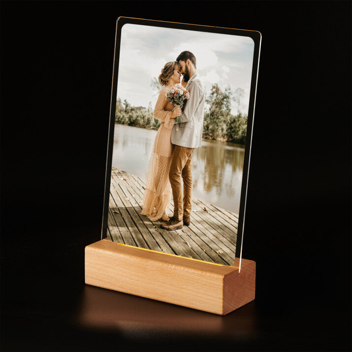Wydruk na szkle akrylowym A4 z podstawką drewnianą LED