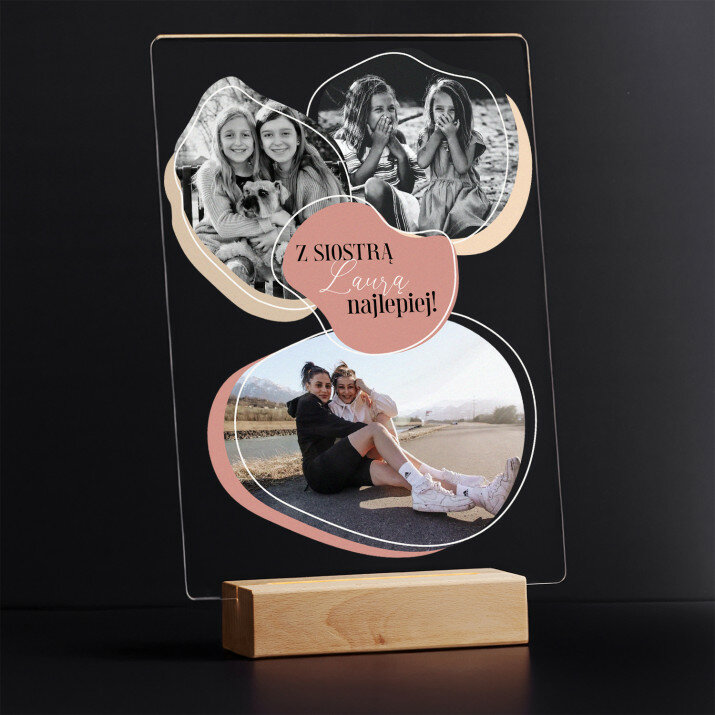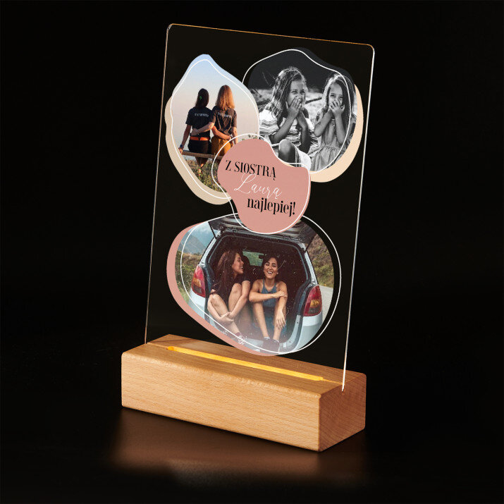 Wydruk na szkle akrylowym z podstawką drewnianą LED.