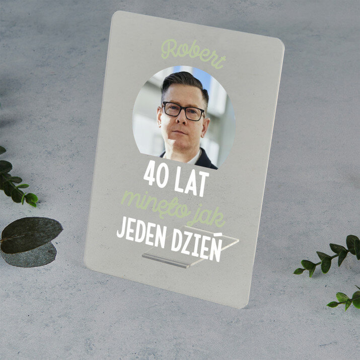 Wydruk na szkle akrylowym A4 z podstawką drewnianą