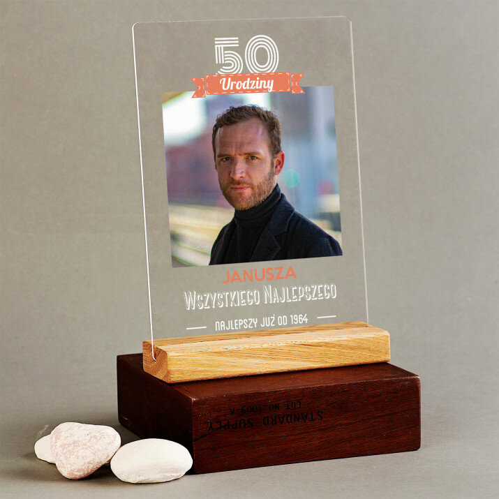 Wyjątkowa pamiątka, która zachwyci obdarowaną osobę! Wydruk na bezbarwnym szkle akrylowym (pleksiglas) o grubości 2 mm to upominek na lata. Materiał wyróżnia się doskonałą jakością powierzchni i sztywnością, jest odporny na uszkodzenia oraz warunki atmosferyczne. Dzięki eleganckiej, drewnianej podstawce wydruk można od razu postawić na półce. Gwarantujemy, że będzie to świetna niespodzianka dla Twoich bliskich!Oferujemy cztery różne opcje dla tego wydruku: