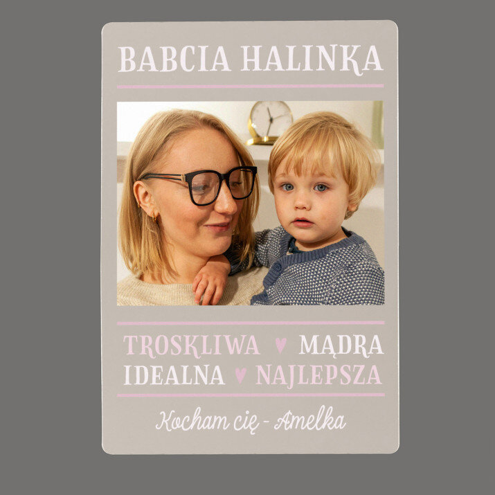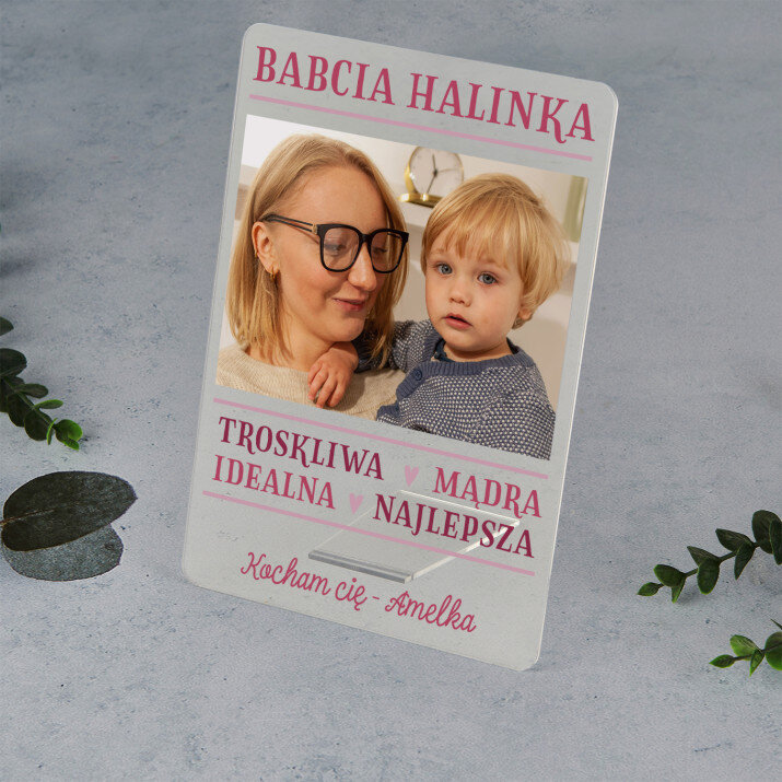 Wyjątkowa pamiątka, która zachwyci obdarowaną osobę! Wydruk na bezbarwnym szkle akrylowym (pleksiglas) o grubości 2 mm to upominek na lata. Materiał wyróżnia się doskonałą jakością powierzchni i sztywnością, jest odporny na uszkodzenia oraz warunki atmosferyczne. Dzięki eleganckiej, drewnianej podstawce wydruk można od razu postawić na półce. Gwarantujemy, że będzie to świetna niespodzianka dla Twoich bliskich!