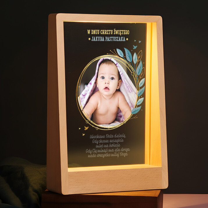 Wyjątkowa pamiątka, która zachwyci obdarowaną osobę! Wydruk na bezbarwnym szkle akrylowym (pleksiglas) o grubości 2 mm to upominek na lata. Materiał wyróżnia się doskonałą jakością powierzchni i sztywnością, jest odporny na uszkodzenia oraz warunki atmosferyczne. Dzięki eleganckiej, drewnianej podstawce wydruk można od razu postawić na półce. Gwarantujemy, że będzie to świetna niespodzianka dla Twoich bliskich!Oferujemy cztery różne opcje dla tego wydruku: