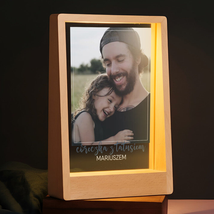 Ten wydruk na szkle z napisem 'Córeczka z tatusiem' to piękny prezent dla taty od jego ukochanej córeczki.