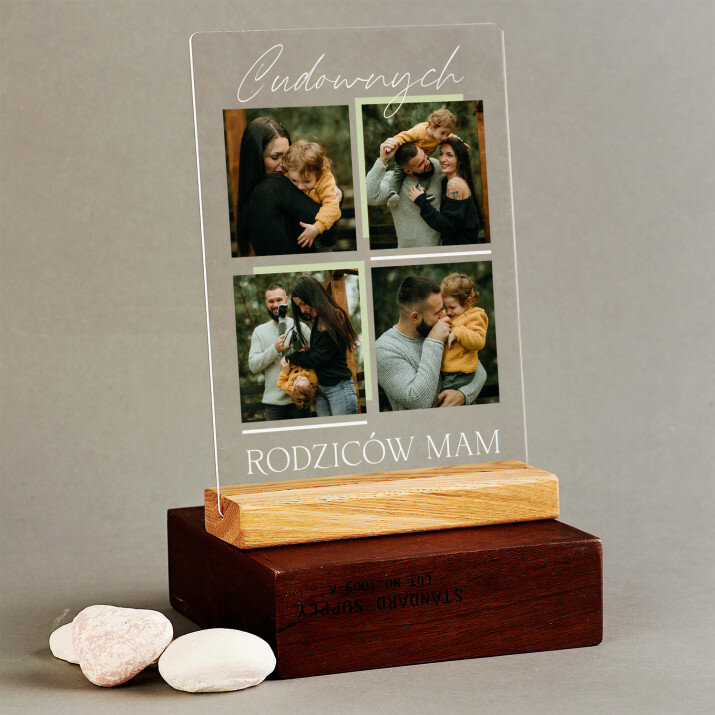 Wyjątkowa pamiątka, która zachwyci obdarowaną osobę! Wydruk na bezbarwnym szkle akrylowym (pleksiglas) o grubości 2 mm to upominek na lata. Materiał wyróżnia się doskonałą jakością powierzchni i sztywnością, jest odporny na uszkodzenia oraz warunki atmosferyczne. Dzięki eleganckiej, drewnianej podstawce wydruk można od razu postawić na półce. Gwarantujemy, że będzie to świetna niespodzianka dla Twoich bliskich!Oferujemy cztery różne opcje dla tego wydruku: