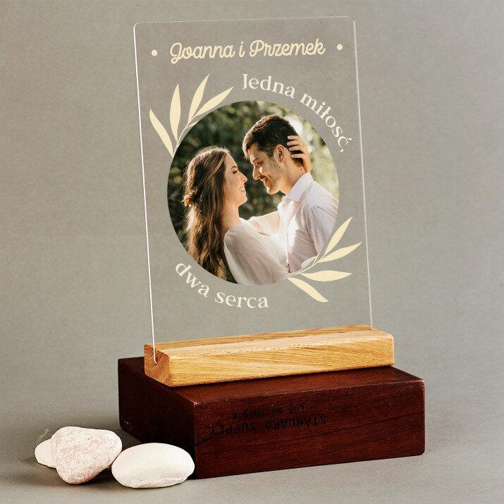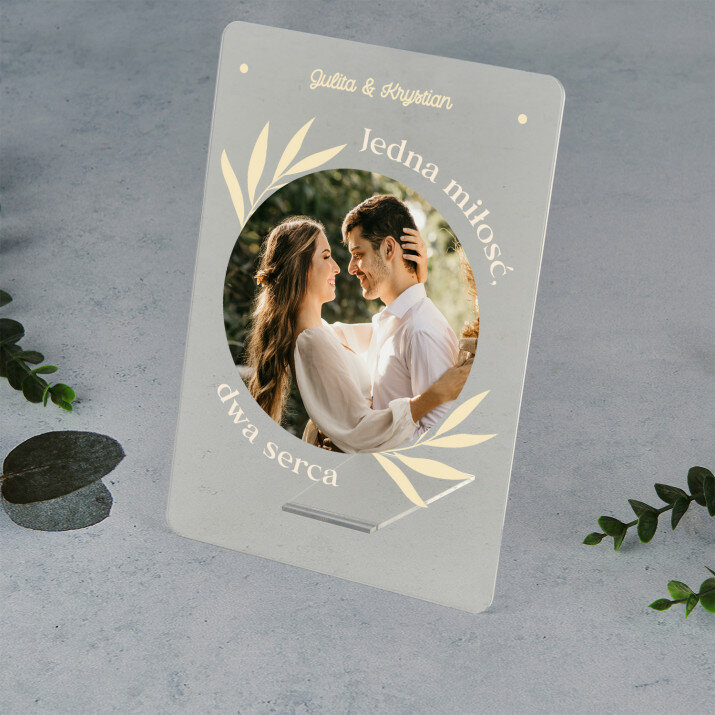 Wyjątkowa pamiątka, która zachwyci obdarowaną osobę! Wydruk na bezbarwnym szkle akrylowym (pleksiglas) o grubości 2 mm to upominek na lata. Materiał wyróżnia się doskonałą jakością powierzchni i sztywnością, jest odporny na uszkodzenia oraz warunki atmosferyczne. Dzięki eleganckiej, drewnianej podstawce wydruk można od razu postawić na półce. Gwarantujemy, że będzie to świetna niespodzianka dla Twoich bliskich!Oferujemy cztery różne opcje dla tego wydruku: