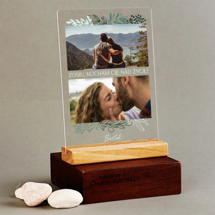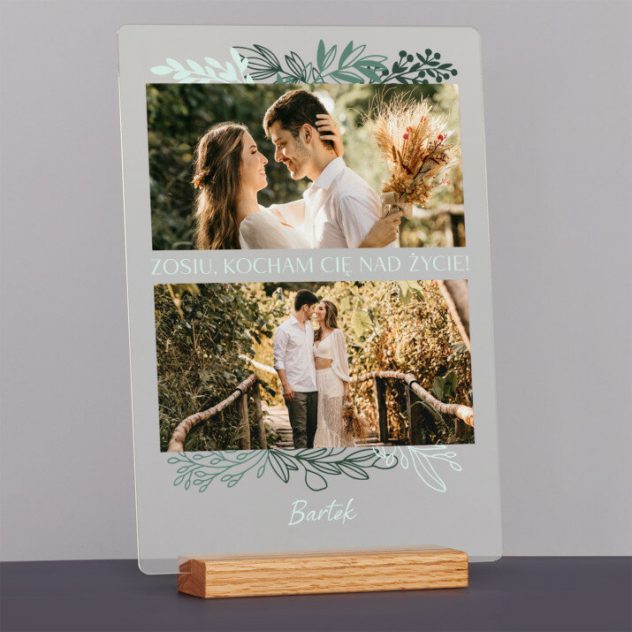 Wyjątkowa pamiątka, która zachwyci obdarowaną osobę! Wydruk na bezbarwnym szkle akrylowym (pleksiglas) o grubości 2 mm to upominek na lata. Materiał wyróżnia się doskonałą jakością powierzchni i sztywnością, jest odporny na uszkodzenia oraz warunki atmosferyczne. Dzięki eleganckiej, drewnianej podstawce wydruk można od razu postawić na półce. Gwarantujemy, że będzie to świetna niespodzianka dla Twoich bliskich!Oferujemy cztery różne opcje dla tego wydruku: