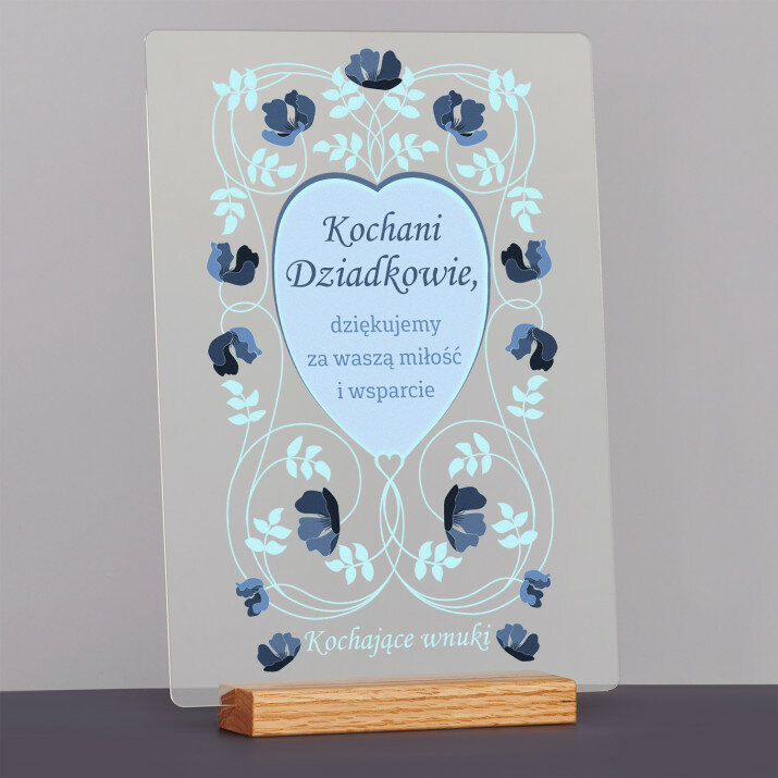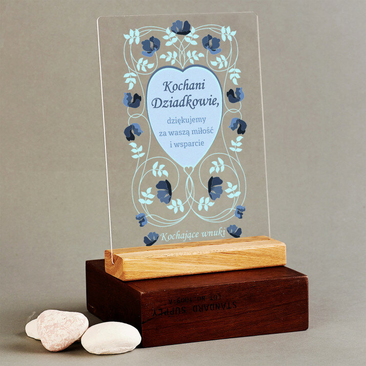 Wydruk na szkle akrylowym A4 z podstawką drewnianą