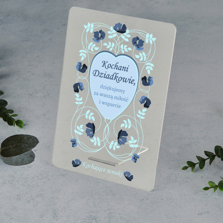 Wydruk na szkle akrylowym z podstawką z akrylu.