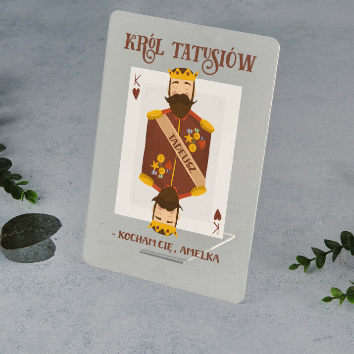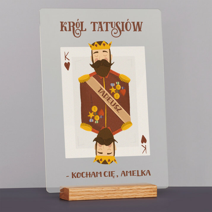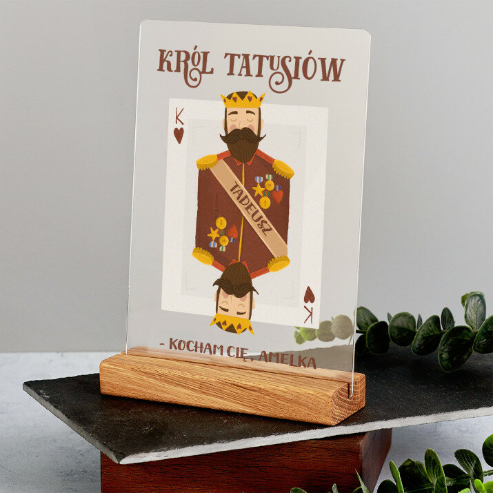 Król tatusiów - Wydruk na szkle akrylowym z podstawką to piękny prezent dla mojego ukochanego taty, który zasługuje na wyjątkowe wyrażenie naszej miłości.