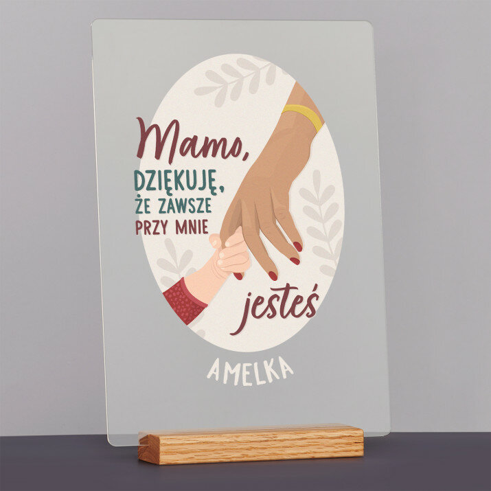 MAMO, DZIĘKUJĘ, ŻE JESTEŚ - WYDRUK NA SZKLE AKRYLOWYM Z PODSTAWKĄ