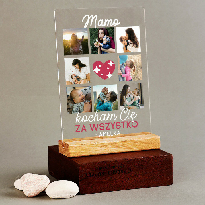Wyjątkowa pamiątka, która zachwyci obdarowaną osobę! Wydruk na bezbarwnym szkle akrylowym (pleksiglas) o grubości 2 mm to upominek na lata. Materiał wyróżnia się doskonałą jakością powierzchni i sztywnością, jest odporny na uszkodzenia oraz warunki atmosferyczne. Dzięki eleganckiej, drewnianej podstawce wydruk można od razu postawić na półce. Gwarantujemy, że będzie to świetna niespodzianka dla Twoich bliskich!Oferujemy cztery różne opcje dla tego wydruku: