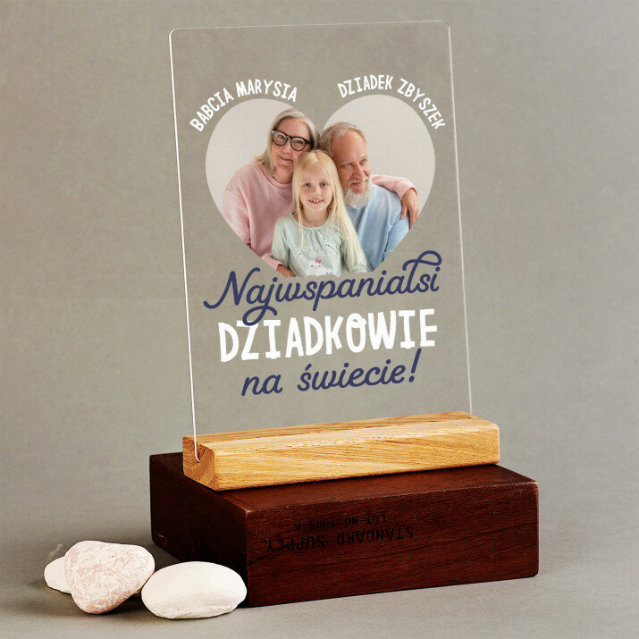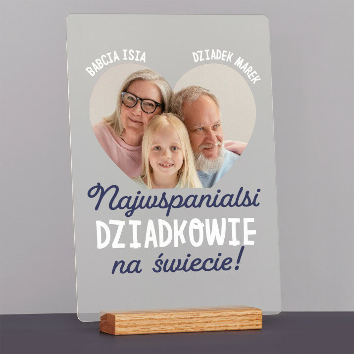 Wyjątkowa pamiątka, która zachwyci obdarowaną osobę! Wydruk na bezbarwnym szkle akrylowym (pleksiglas) o grubości 2 mm to upominek na lata. Materiał wyróżnia się doskonałą jakością powierzchni i sztywnością, jest odporny na uszkodzenia oraz warunki atmosferyczne. Dzięki eleganckiej, drewnianej podstawce wydruk można od razu postawić na półce. Gwarantujemy, że będzie to świetna niespodzianka dla Twoich bliskich!Oferujemy cztery różne opcje dla tego wydruku: