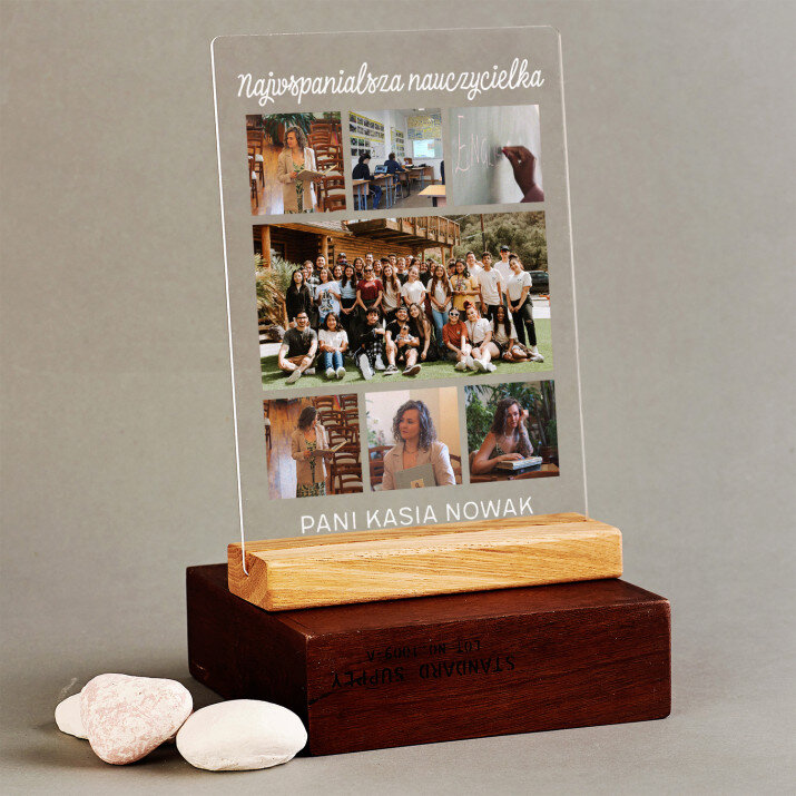 Wyjątkowa pamiątka, która zachwyci obdarowaną osobę! Wydruk na bezbarwnym szkle akrylowym (pleksiglas) o grubości 2 mm to upominek na lata. Materiał wyróżnia się doskonałą jakością powierzchni i sztywnością, jest odporny na uszkodzenia oraz warunki atmosferyczne. Dzięki eleganckiej, drewnianej podstawce wydruk można od razu postawić na półce. Gwarantujemy, że będzie to świetna niespodzianka dla Twoich bliskich!Oferujemy cztery różne opcje dla tego wydruku: