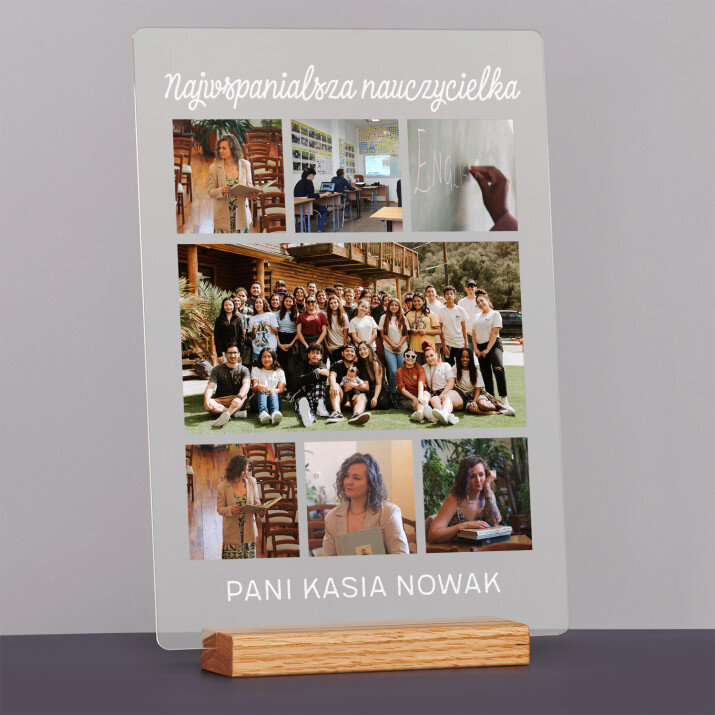 Wydruk na szkle akrylowym A4 z podstawką drewnianą