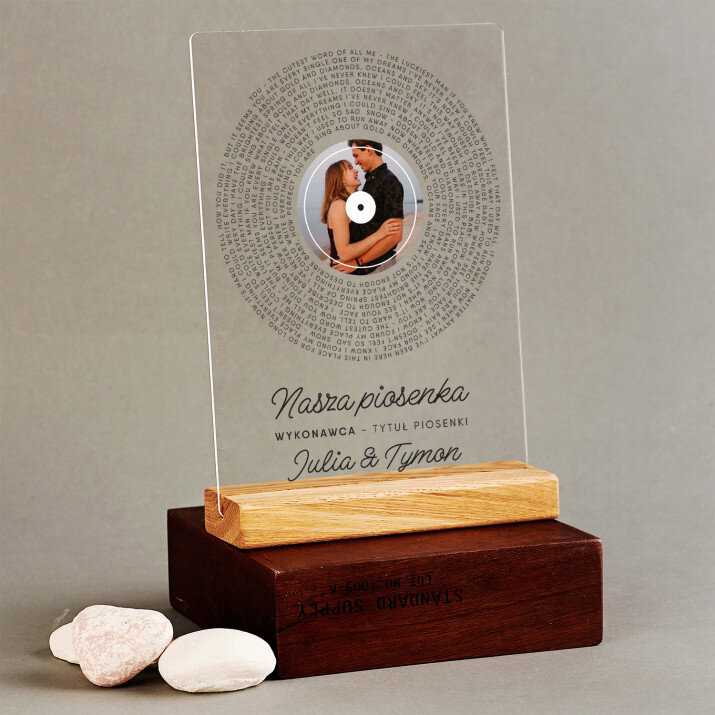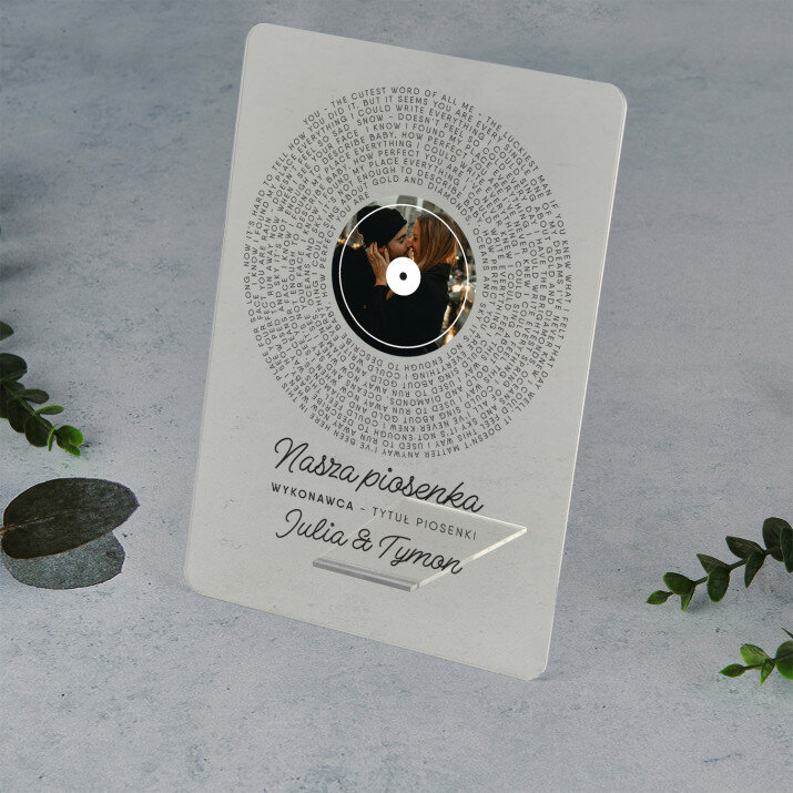 Nasza piosenka na szkle akrylowym to oryginalny sposób na ozdobienie wnętrza i przypomnienie sobie o miłych chwilach.