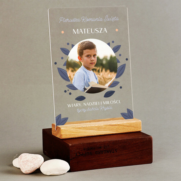Wyjątkowa pamiątka, która zachwyci obdarowaną osobę! Wydruk na bezbarwnym szkle akrylowym (pleksiglas) o grubości 2 mm to upominek na lata. Materiał wyróżnia się doskonałą jakością powierzchni i sztywnością, jest odporny na uszkodzenia oraz warunki atmosferyczne. Dzięki eleganckiej, drewnianej podstawce wydruk można od razu postawić na półce. Gwarantujemy, że będzie to świetna niespodzianka dla Twoich bliskich!Oferujemy cztery różne opcje dla tego wydruku: