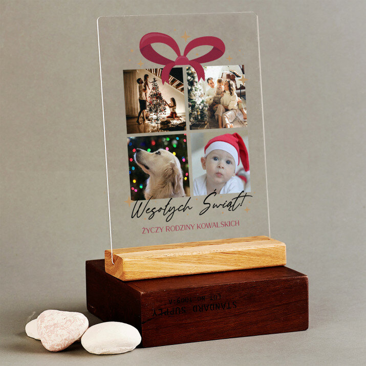 Wyjątkowa pamiątka, która zachwyci obdarowaną osobę! Wydruk na bezbarwnym szkle akrylowym (pleksiglas) o grubości 2 mm to upominek na lata. Materiał wyróżnia się doskonałą jakością powierzchni i sztywnością, jest odporny na uszkodzenia oraz warunki atmosferyczne. Dzięki eleganckiej, drewnianej podstawce wydruk można od razu postawić na półce. Gwarantujemy, że będzie to świetna niespodzianka dla Twoich bliskich!Oferujemy cztery różne opcje dla tego wydruku: