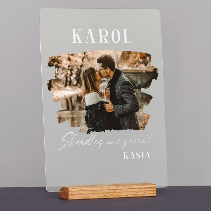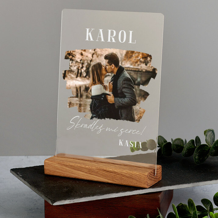 Wyjątkowa pamiątka, która zachwyci obdarowaną osobę! Wydruk na bezbarwnym szkle akrylowym (pleksiglas) o grubości 2 mm to upominek na lata. Materiał wyróżnia się doskonałą jakością powierzchni i sztywnością, jest odporny na uszkodzenia oraz warunki atmosferyczne. Dzięki eleganckiej, drewnianej podstawce wydruk można od razu postawić na półce. Gwarantujemy, że będzie to świetna niespodzianka dla Twoich bliskich!Oferujemy cztery różne opcje dla tego wydruku: