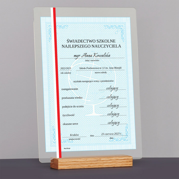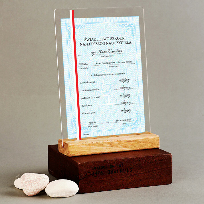 Ten wydruk na szkle z podstawką to świetny pomysł na podziękowanie dla nauczyciela. Polecam!