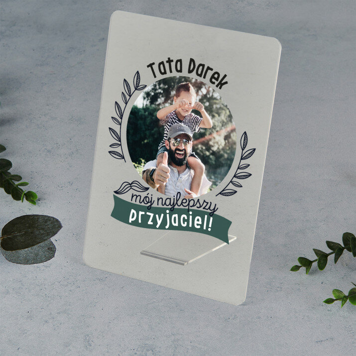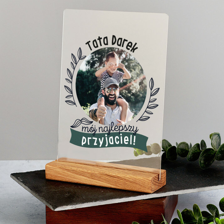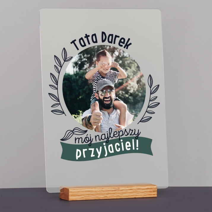 Tata mój najlepszy przyjaciel - Wydruk na szkle akrylowym z podstawką to wzruszający prezent dla mojego taty, który oddaje naszą wyjątkową więź.
