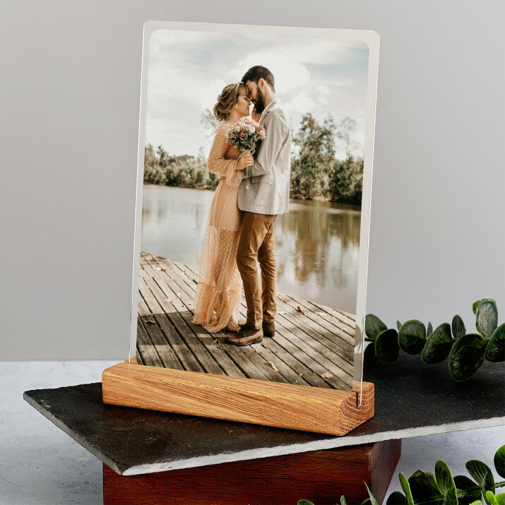 Wydruk na szkle akrylowym A4 z podstawką drewnianą