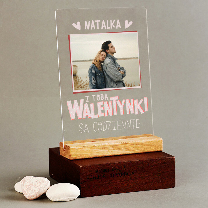 Wyjątkowa pamiątka, która zachwyci obdarowaną osobę! Wydruk na bezbarwnym szkle akrylowym (pleksiglas) o grubości 2 mm to upominek na lata. Materiał wyróżnia się doskonałą jakością powierzchni i sztywnością, jest odporny na uszkodzenia oraz warunki atmosferyczne. Dzięki eleganckiej, drewnianej podstawce wydruk można od razu postawić na półce. Gwarantujemy, że będzie to świetna niespodzianka dla Twoich bliskich!Oferujemy cztery różne opcje dla tego wydruku: