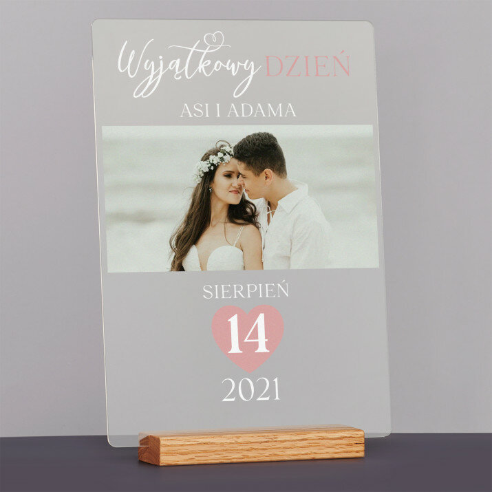Ten wydruk na szkle akrylowym z napisem 'Wyjątkowy dzień' to cudowna pamiątka z naszego wyjątkowego dnia! Jestem zachwycona jakością wykonania.
